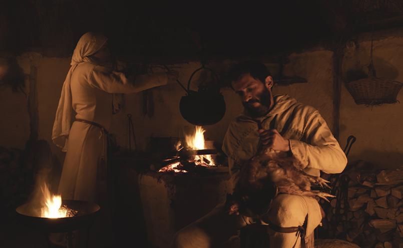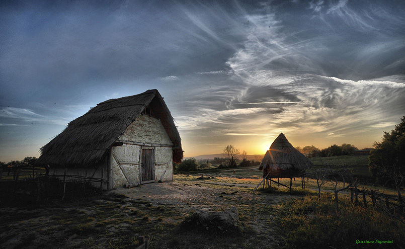 Dopo una giornata passata a coltivare i campi del dominus Razo, i contadini, consumato un frugale pasto, sono ancora impegnati nei loro mestieri.