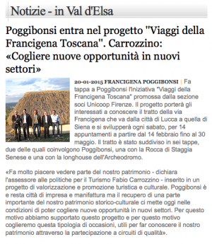 Poggibonsi entra nel progetto ''Viaggi della Francigena Toscana''. Carrozzino: «Cogliere nuove opportunità in nuovi settori»