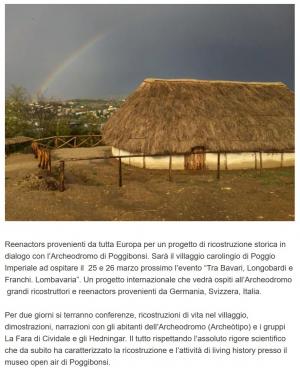 Reenactors provenienti da tutta Europa per un progetto di ricostruzione storica in dialogo con l’Archeodromo di Poggibonsi. Sarà il villaggio carolingio di Poggio Imperiale ad ospitare il 25 e 26 marzo prossimo l’evento “Tra Bavari, Longobardi e Franchi. Lombavaria”. Un progetto internazionale che vedrà ospiti all’Archeodromo grandi ricostruttori e reenactors provenienti da Germania, Svizzera, Italia.